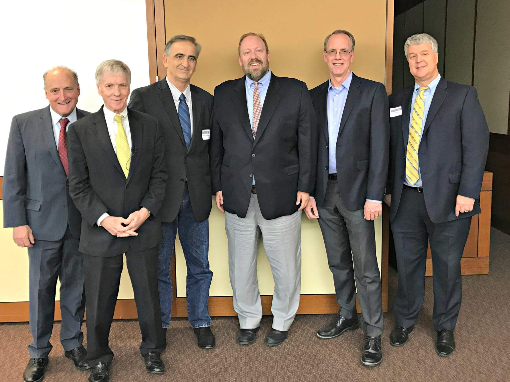 (From left to right): Dean Stowe Shoemaker, UNLV Harrah Hotel College, Amb. Ryan Crocker, Senad Hrustanovic, Dean Daniel Hamilton, UNLV Boyd School of Law, Dean Chris Heavey, UNLV College of Liberal Arts, Paul Ray. Image courtesy of UNLV Boyd School of Law.